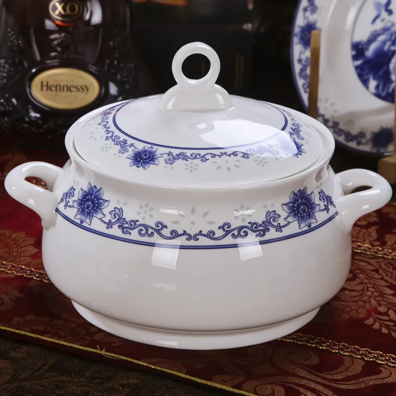 Product Name: guci 58 Pieces Jingdezhen High-grade Bone Enamel In The Color Blue And White Exquisite Porcelain Rich Peony Ceramic Utensils Set