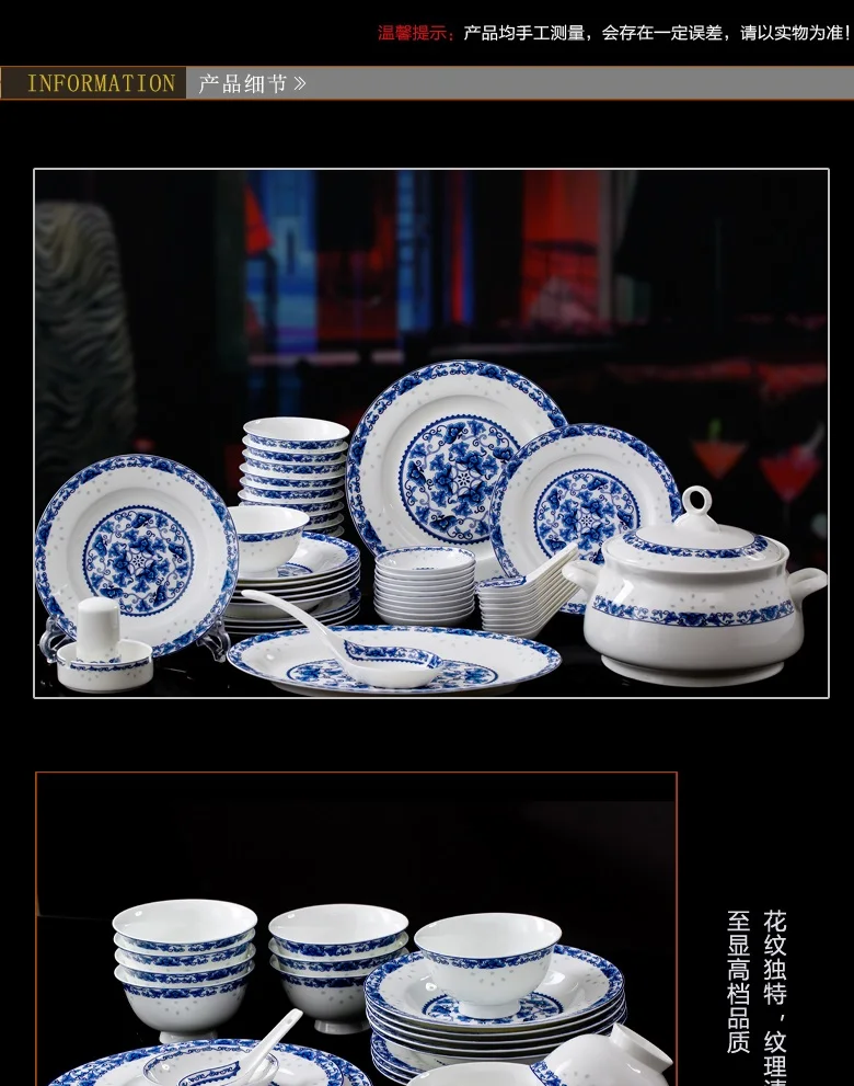 Product Name: guci Jingdezhen Pottery 56 Piec Highgrade Bone China Porcelain Blue Porcelain Jade Tree Wrapped Tableware Set Dishes Marriage