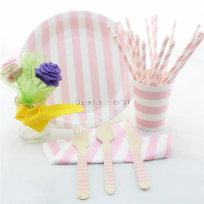 Best . (0% Off) Buy Ipalmay 6 Colors Party Tableware Set Striped Paper Cups Plates Napkins And Straws Party Striped Wooden Spoons Forks Knives Price Online.