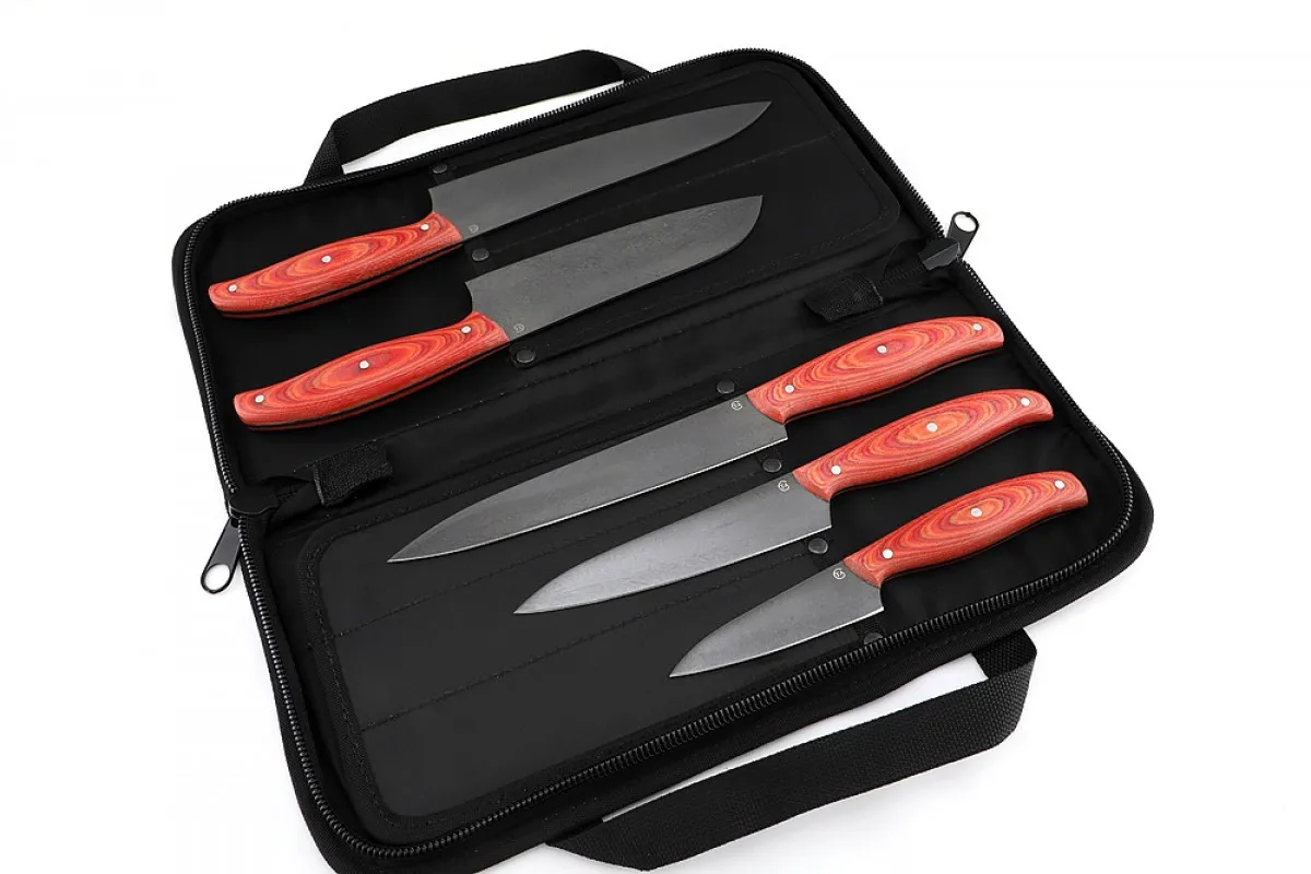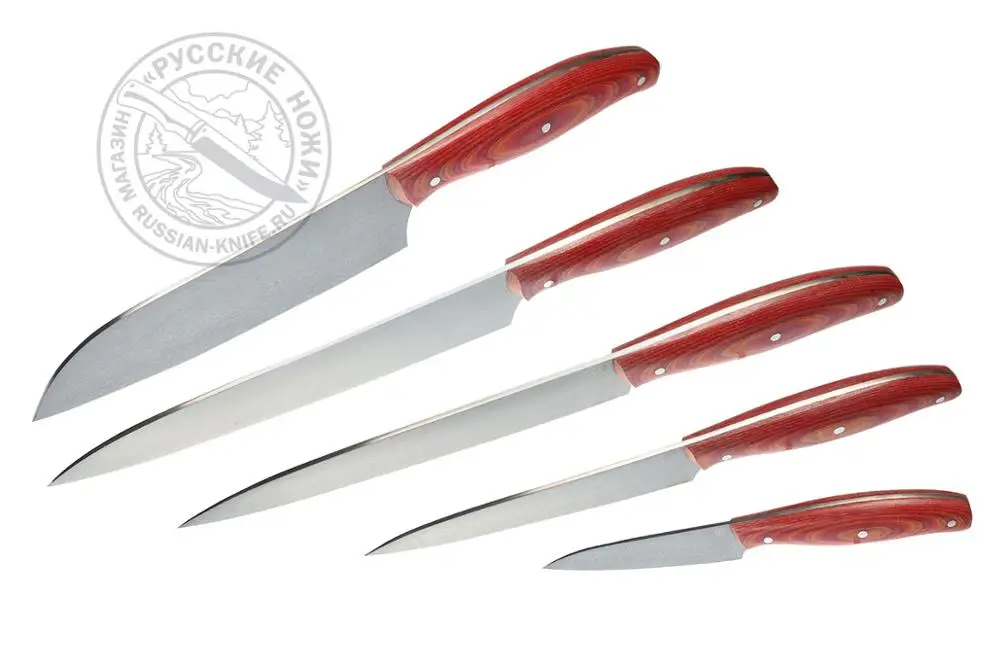 Product Name: Set Of Kitchen Knives "shef-1" (steel D2), Mikarta, 5 Knives